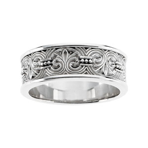 Some of the designs available in wedding bands. Available in 14K white or